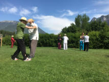 Eine Partnerübung: einzelne Bewegungen aus der Form werden in das